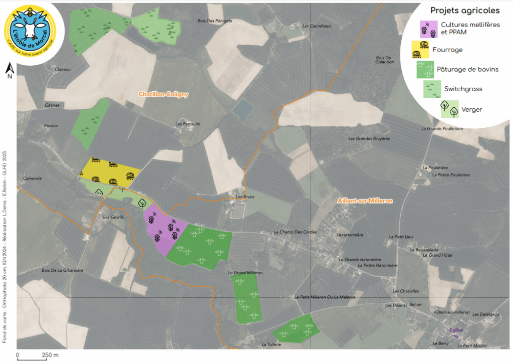 - Enfin, environ 6 ha de jachères seront revalorisés avec l’implantation d’un verger (pommier et noisetier), qui pourra servir de pâturage sylvicole lors des périodes estivales très sèches et permettre également un butinage des abeilles.